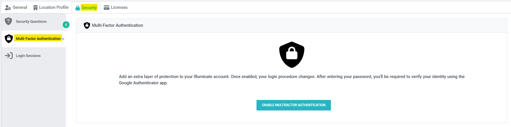 Add an extra layer of protection to your Illuminate account. Once enabled, your login procedure changes: After entering your account credentials, you'll be required to verify your identity using a Google Authenticator.