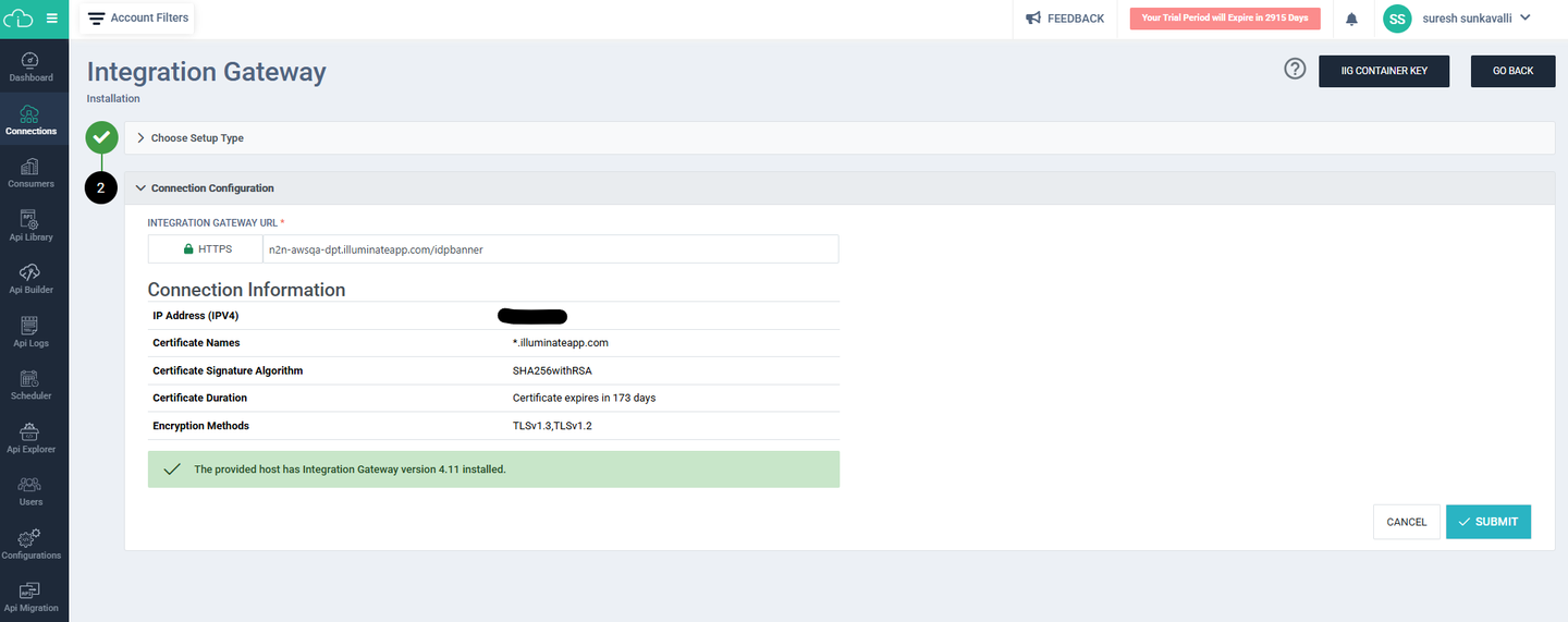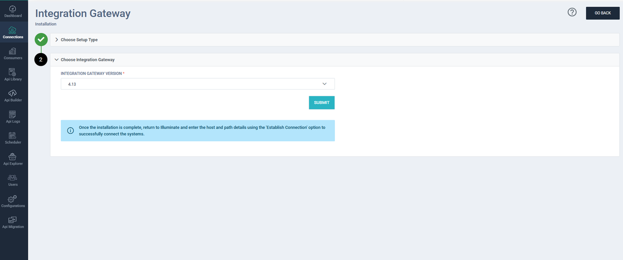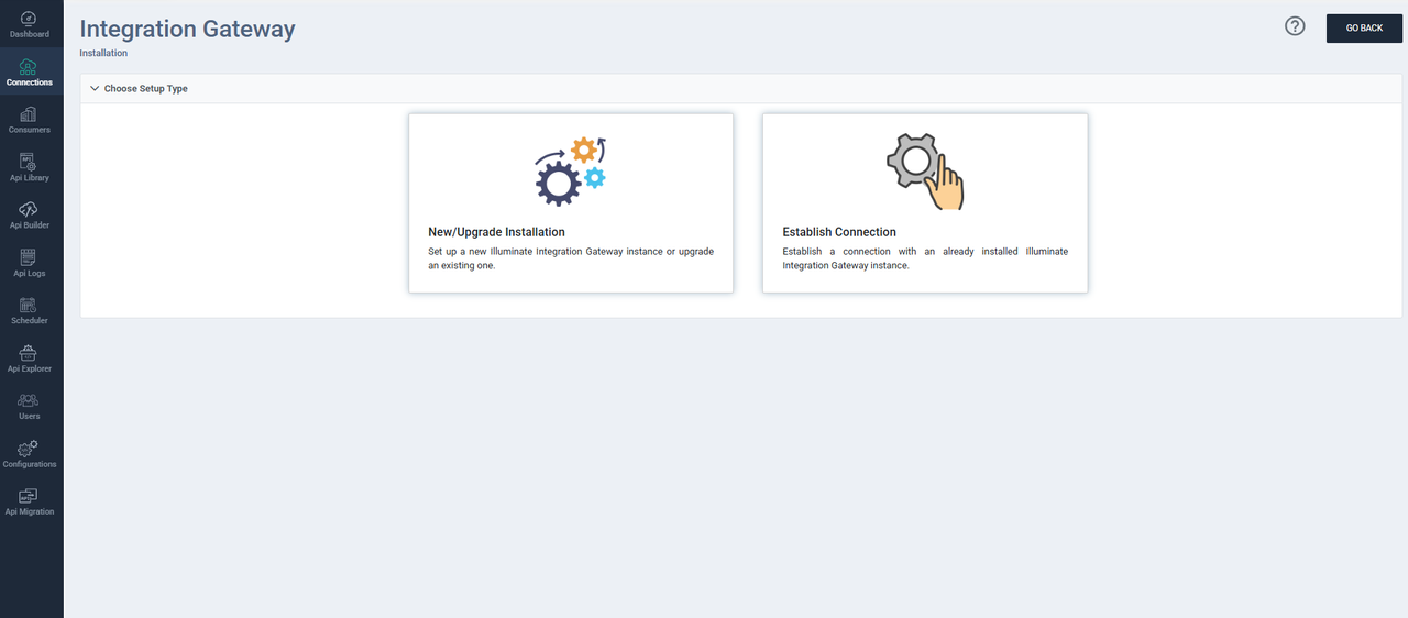 - Then select “New/Upgrade Installation” for new Illuminate Integration Gateway setup and choose IIG version