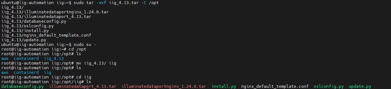 tar -xvf iig-***.tar -C /opt mv iig_4.13/ iig |