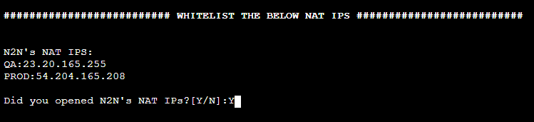 - This step is a NAT IP check where it will ask if the NAT IP is whitelisted. Provide 'Y' if it is whitelisted; otherwise, the script will stop at this point