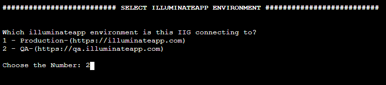 - Select the specific IIG Setup environment. Please choose the environment number based on your requirement (e.g., 2)