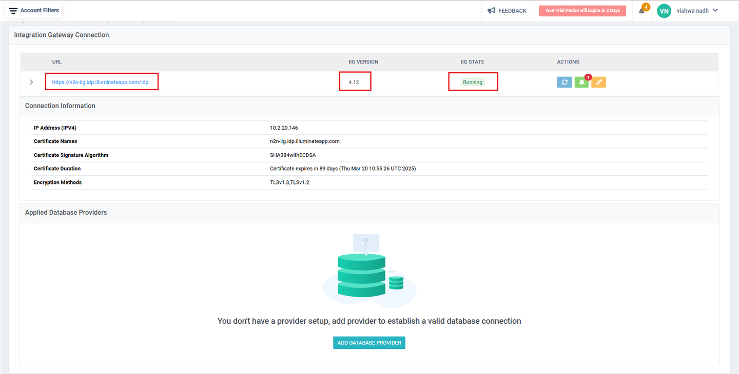We can also verify the IDP status in the IlluminateApp UI, which confirms that the setup has been completed successfully.
