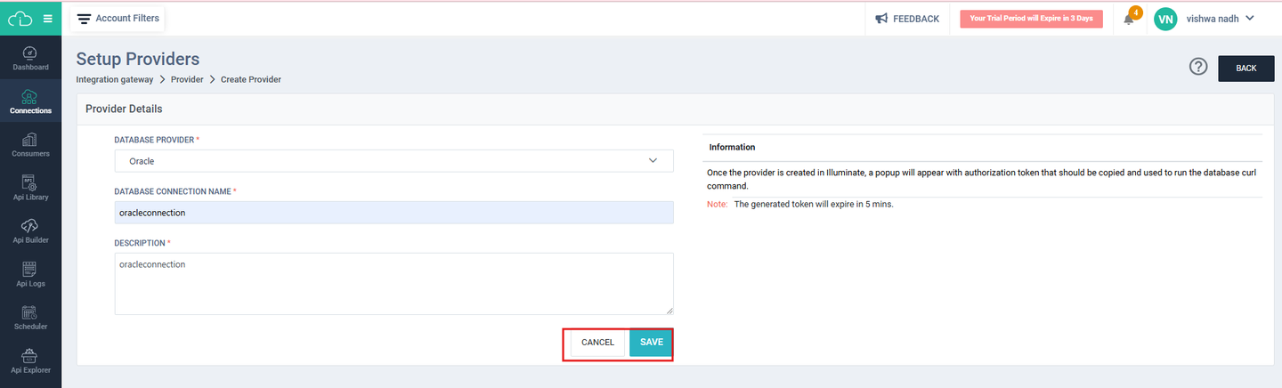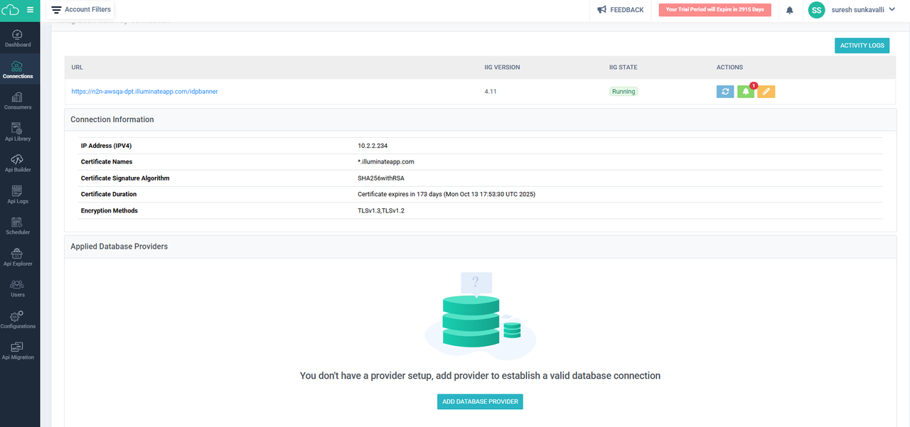- Sign in to the Illuminate application(either QA or PROD) and click on Connections tab from left side menu