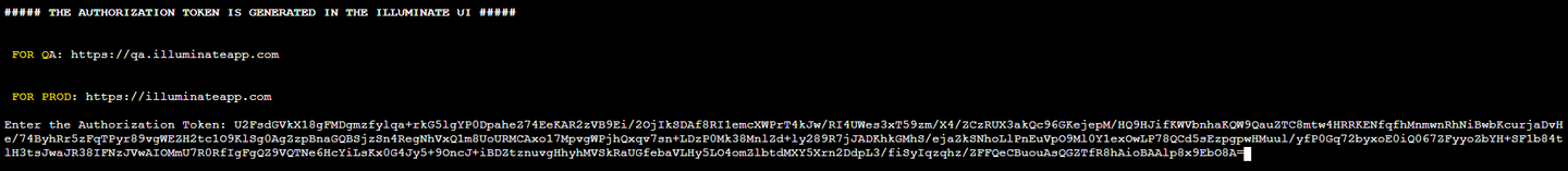 - In the next step, the script will prompt you to enter the authorization token from Illuminate App. To obtain it, log in to the Illuminate App UI, navigate to the 'Connections' tab, and add the DataPort URL