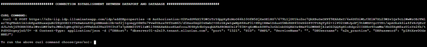 After you press Enter, the script will automatically generate a curl command based on the selected database provider. Verify the details and respond with 'yes' or 'no'