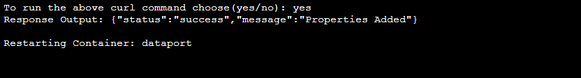 - The database properties will be added to the dataport, and the dataport container will automatically restart via the script to apply the changes to the database