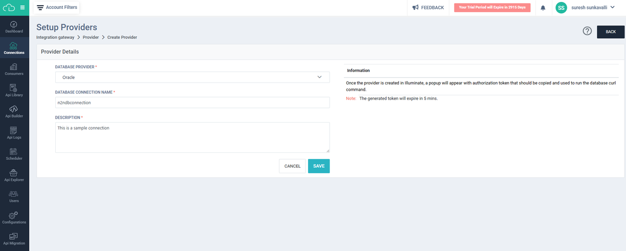After adding the DataPort URL, click on 'Add Database Provider' and enter the required details. Once you click the 'Save' button, the authorization token will be generated