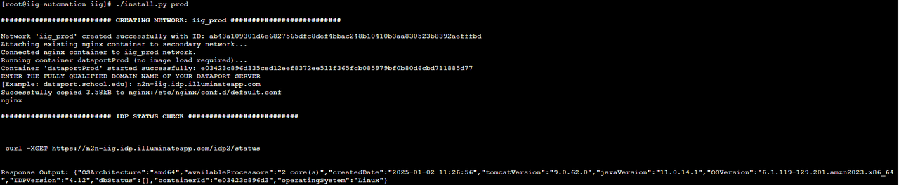 The script will ask for the fully qualified domain name attached to the server. Once entered, it will display the idp2 status
