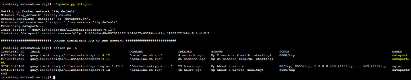 dataportto update dataport to the latest version. The updated dataport will automatically attach to the existing Docker network, while the previous version will be renamed todataport.bkand disconnect from the Docker network